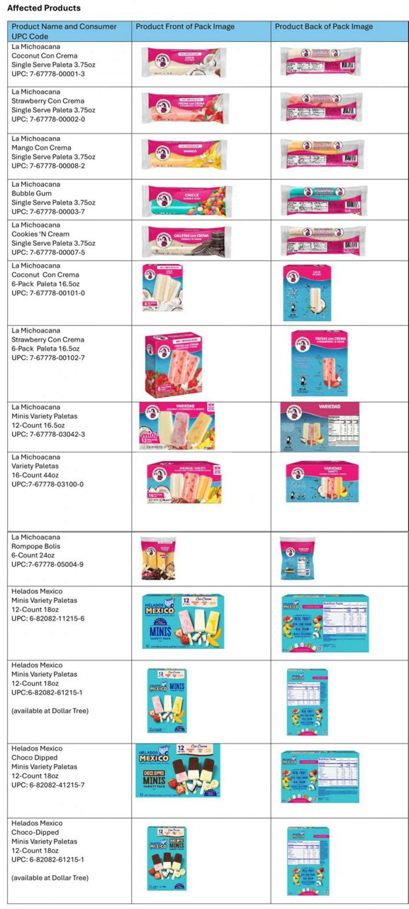 TEXAS — Two popular Mexican ice cream brands are issuing a recall over undeclared milk in their products.