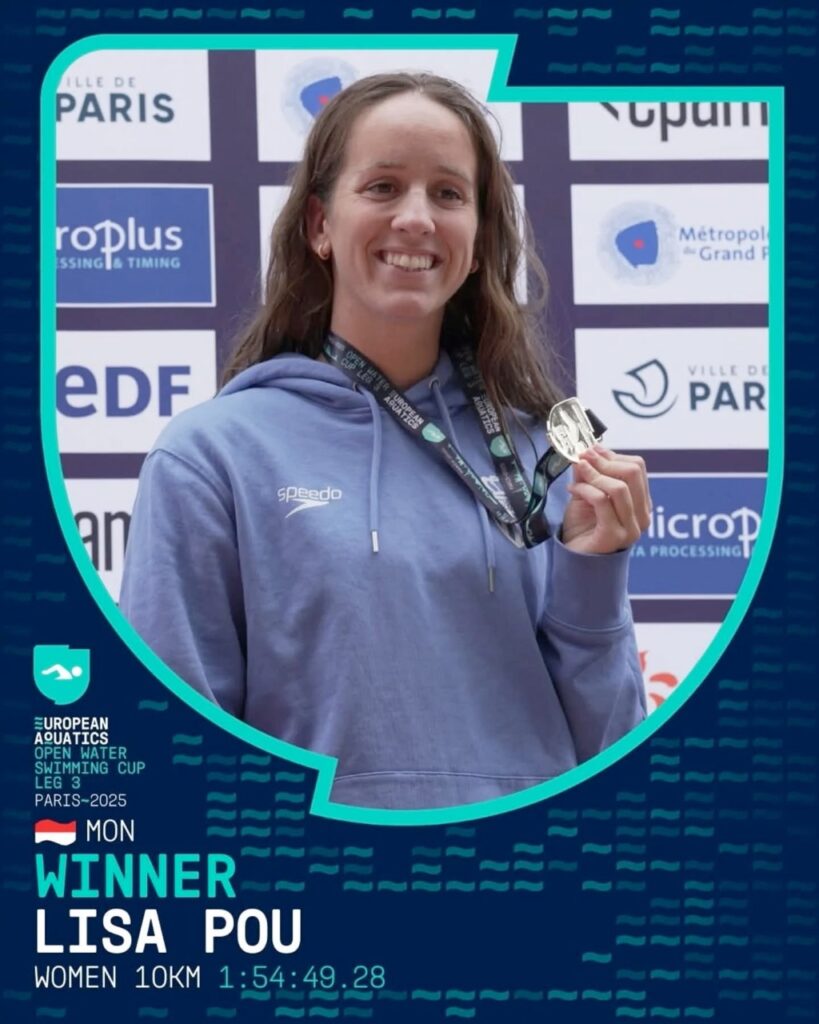 Less than two weeks after making Monegasque sporting history with a world bronze medal in Singapore – the Principality’s first international medal in any sport – Lisa Pou was back in the water at La Villette. The competition was initially scheduled to take place in the Grenelle branch of the Seine, but had to be relocated due to adverse weather conditions that affected water quality in the Parisian river.