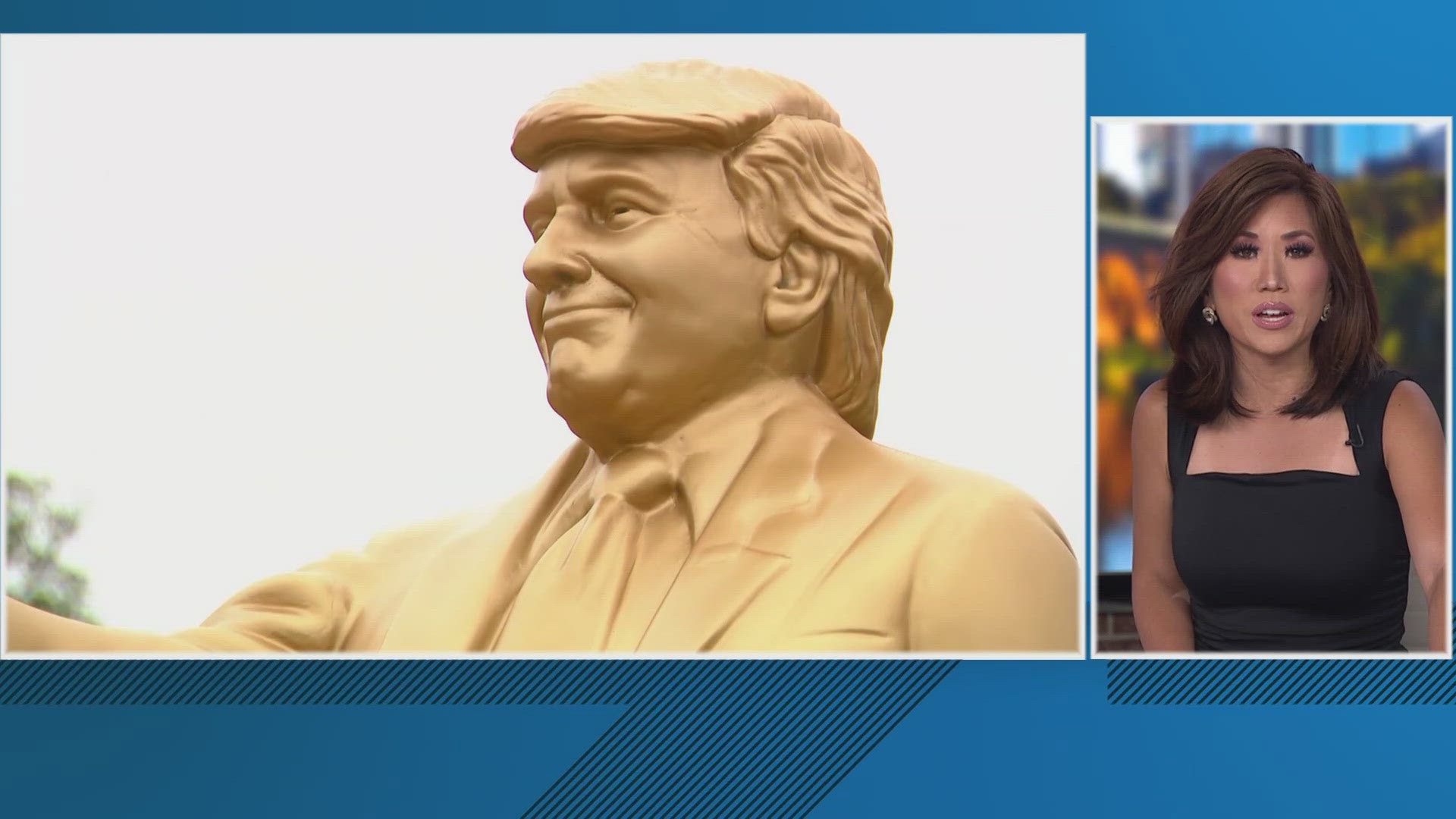 A 12-foot statue featuring President Donald Trump holding a bitcoin has been unveiled.